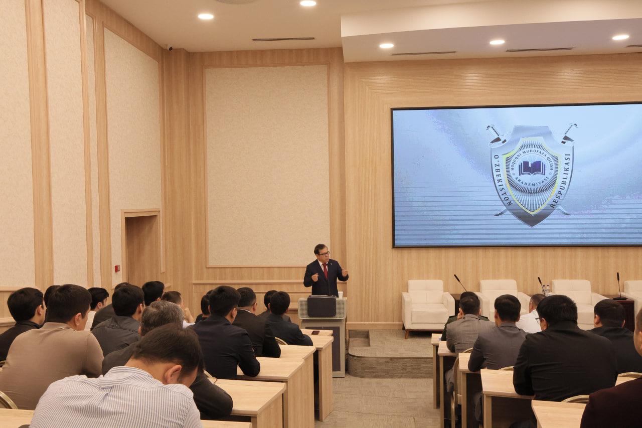 Within the framework of the traditional Enlightenment Hour at the Law Enforcement Academy of the Republic of Uzbekistan, a meeting was held with the Rector of the University of Journalism and Mass Communications of Uzbekistan, Sh.T. Kudratkhoja.