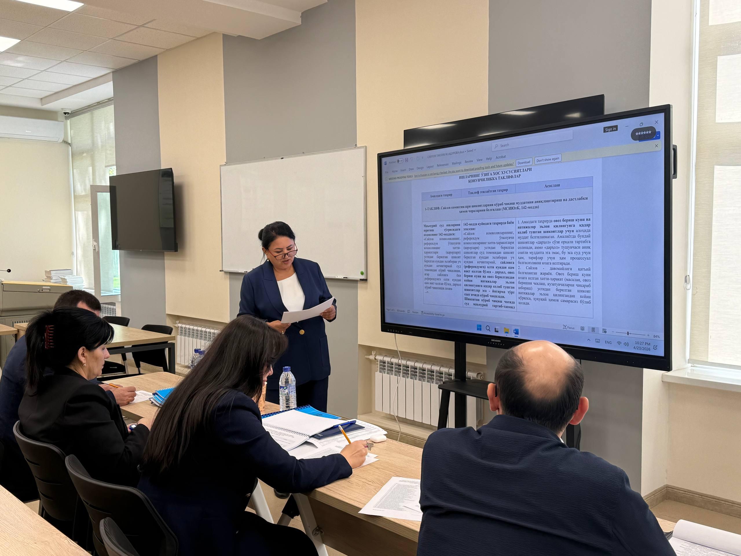 Ўқув машғулотлари давомида фуқаролик судларида давлат мулки билан боғлиқ низолар кўрилишида прокурор иштирокининг самарадорлигини таъминлаш, суд қарорлари ижросини ташкил этиш механизмлари ҳамда ҳуқуқни қўллаш амалиётида ягона ёндашувларни шакллантириш масалалари чуқур таҳлил қилинди.