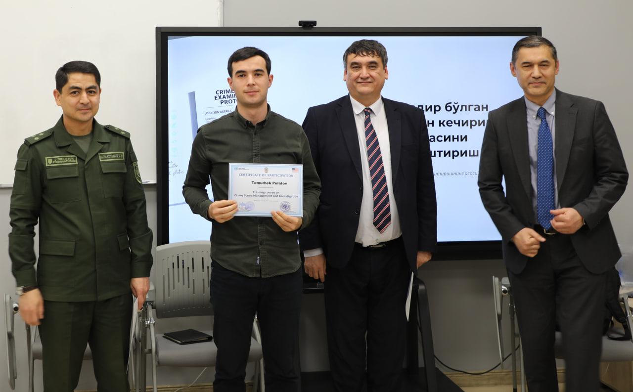 Huquqni muhofaza qilish akademiyasida BMT Giyohvandlik va jinoyatchilik bo‘yicha boshqarmasi (UNODC) hamda AQSH Davlat departamentining giyohvand moddalarning xalqaro aylanmasiga qarshi kurashish va huquqni muhofaza qilish masalalari bo‘yicha byurosi (INL) bilan hamkorlikda prokuratura organlari tergovchilari va ekspert-kriminalistlar uchun «Hodisa sodir bo‘lgan joyni ko‘zdan kechirish va boshqarish» mavzusida besh kunlik xalqaro seminar-trening tashkil etildi.