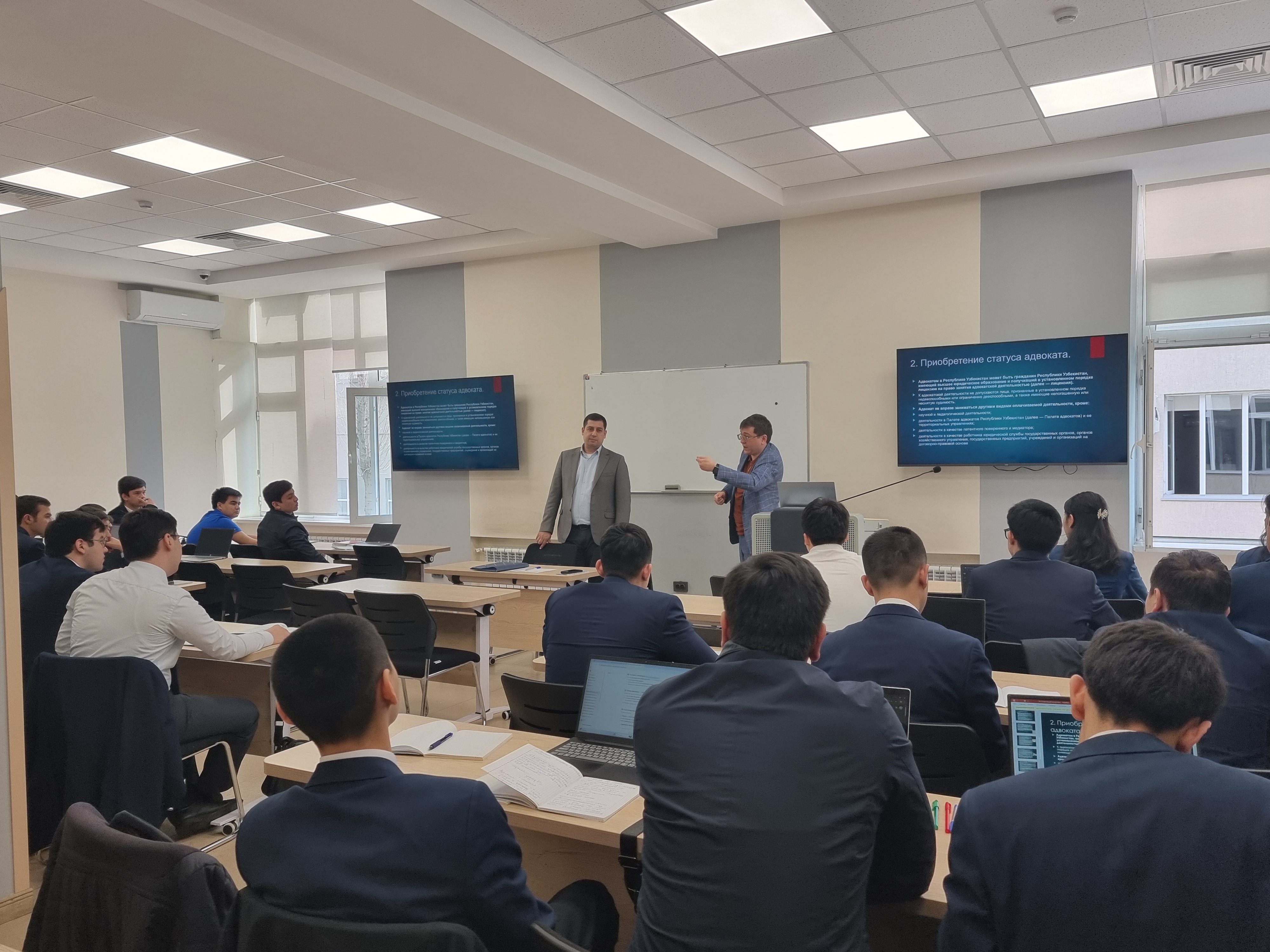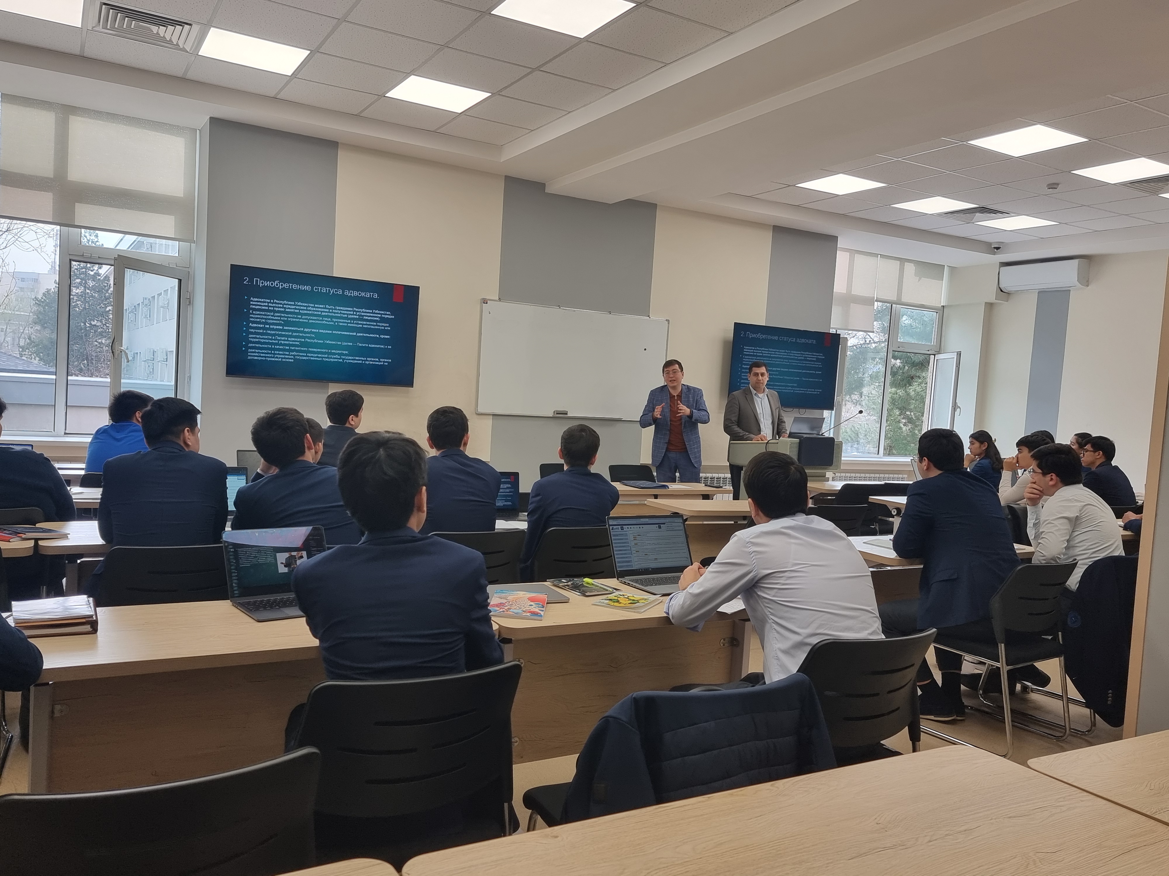 Mazkur ishlar doirasida "Prokurorlik faoliyati" ixtisosligi talabalari uchun "LegalLens AB" advokatlik firmasi vakili S. Karimov tomonidan "Advokatlik faoliyati" mavzusida master-klass o‘tkazildi.