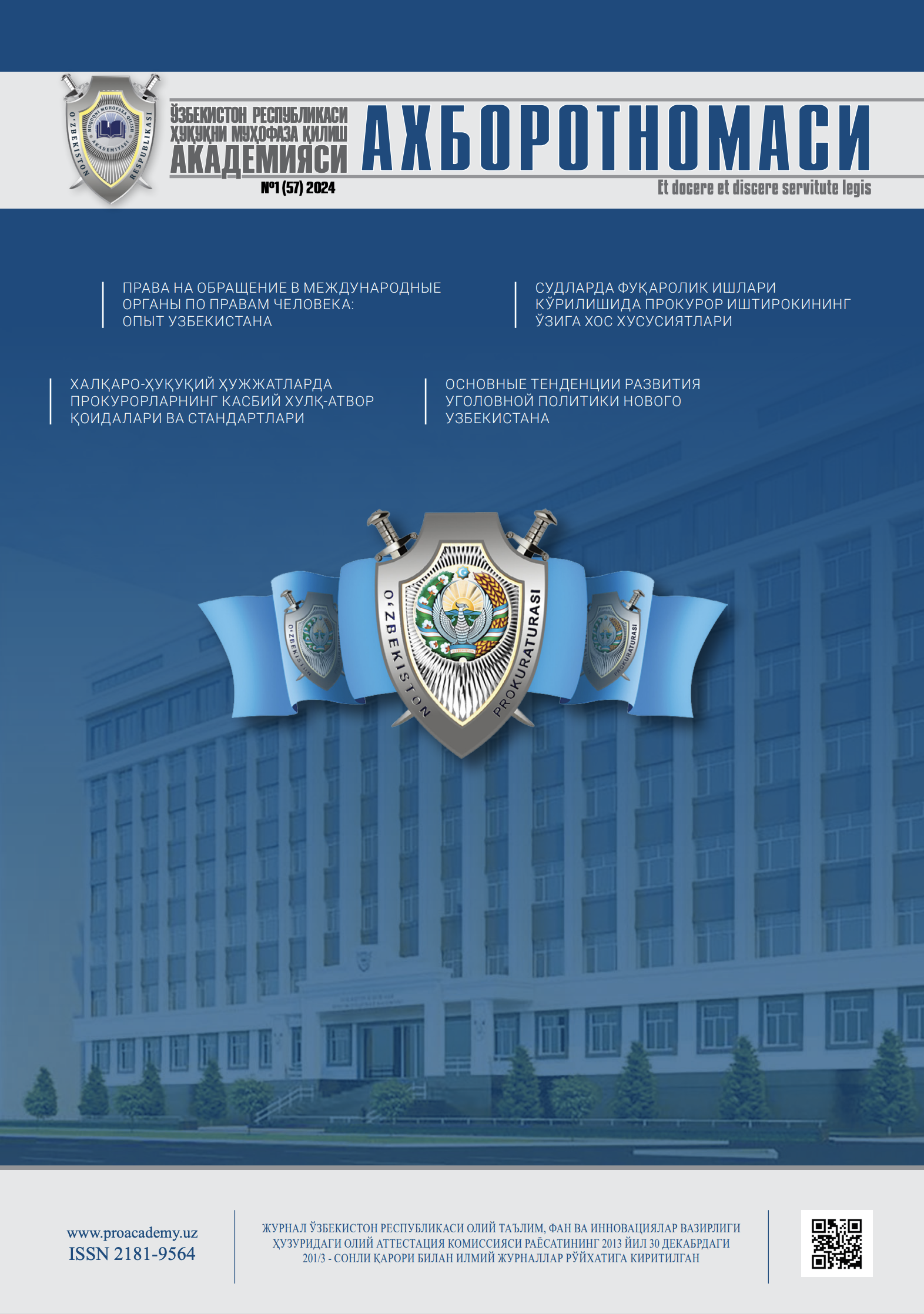 "O'zbekiston Respublikasi Huquqni muhofaza qilish akademiyasi AXBOROTNOMASI" 2024-yil